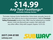 Your local Fountain Valley Subway® Restaurant, located at 9985 Ellis Ave brings new bold flavors along with old favorites to satisfied guests every day. We deliver these mouth-watering flavors with our famous Footlongs, 6” sandwiches, wraps and salads. And we offer a variety of ways to order—quick and easy in the app or online, convenient delivery, come into your neighborhood shop for an in-restaurant meal, or pick up curbside. We’re proud to offer a change from same old fast food with fresh cut veggies and toppings with protein choices, fresh-baked bread and let’s not forget cookies! And we’re happy to help you with any catering needs as well.